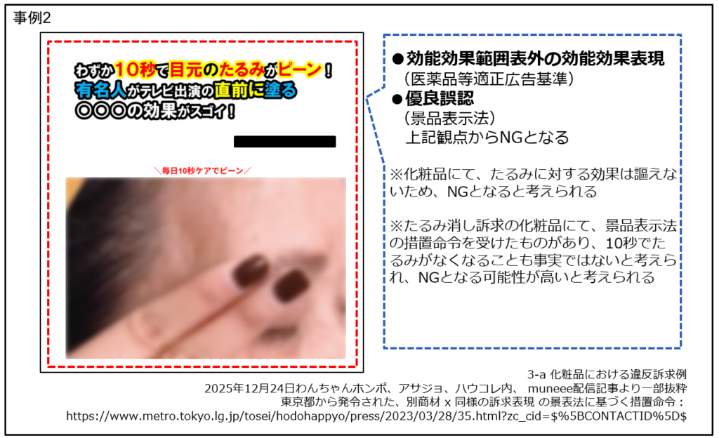 3. 化粧品(薬用化粧品含む)に該当する商材について、医薬品等適正広告基準に違反している表現