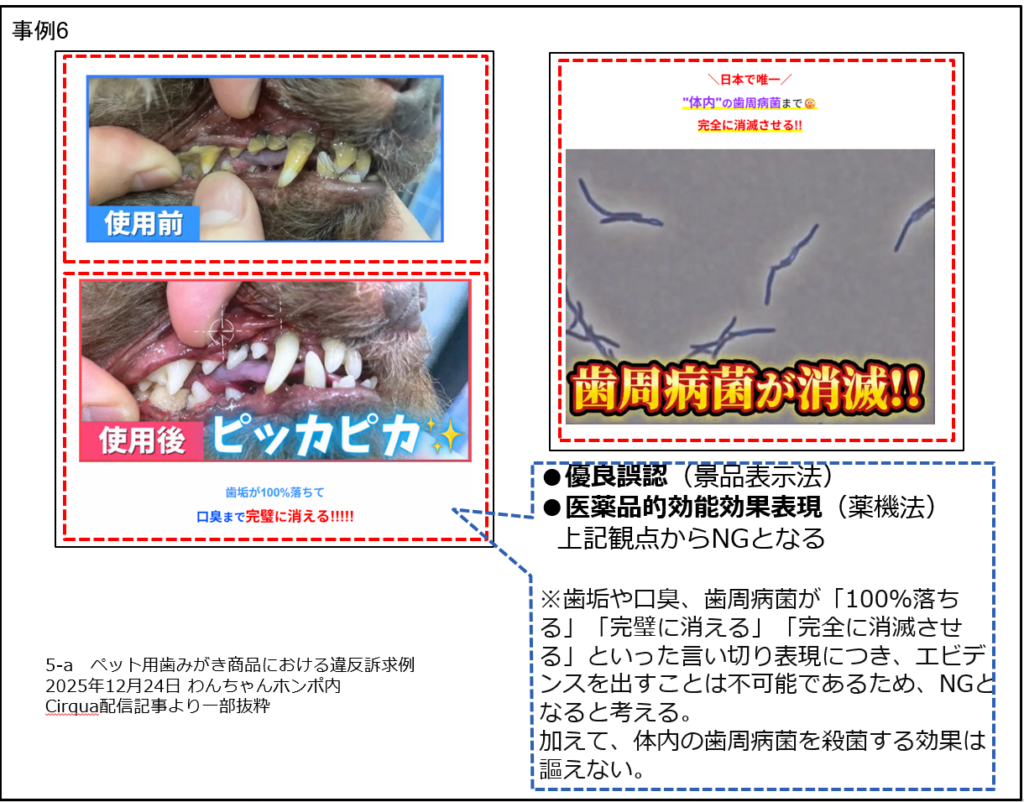 6. その他、薬機法や景表法以外の法令等に違反している表現や、消費者庁から過去に指摘/注意喚起されている表現