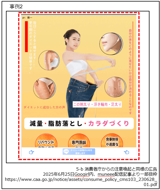 [2] 商材ではなく、その広告表現の内容を問題視し例として記載