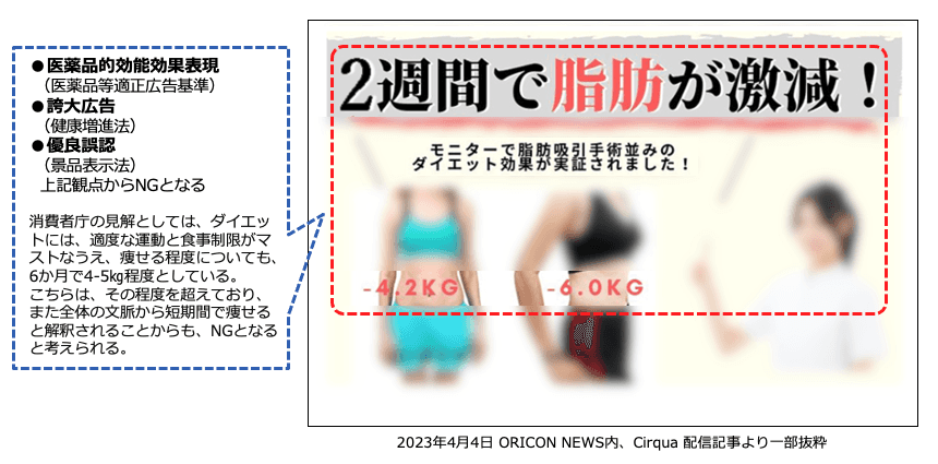 【定期調査】薬機法・景品表示法違反の恐れがある広告表現の配信実例 2023.4.7