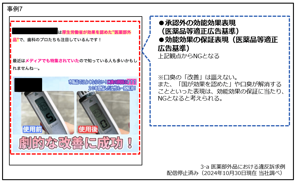 4. 医薬品に該当する商材について、医薬品等適正広告基準に違反している表現