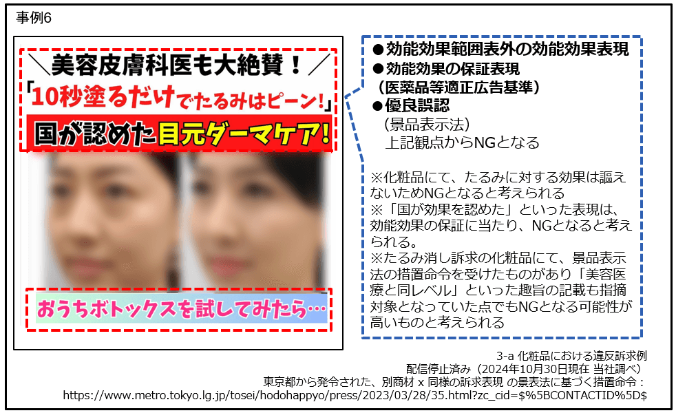 3. 化粧品(薬用化粧品含む)に該当する商材について、医薬品等適正広告基準に違反している表現