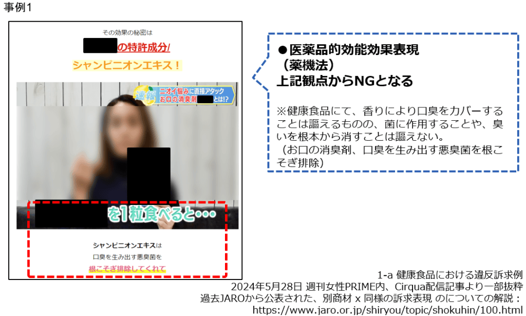 [2] 商材ではなく、その広告表現の内容を問題視し例として記載