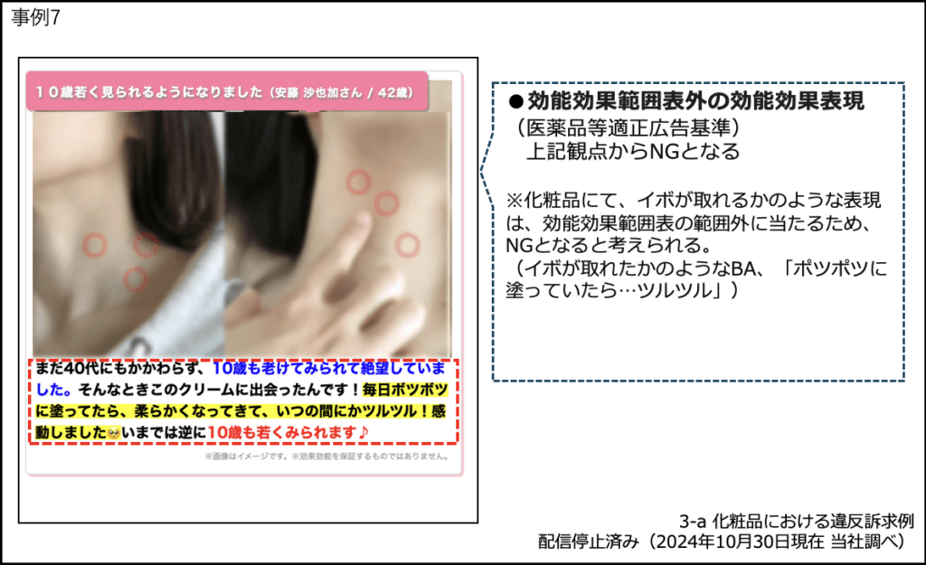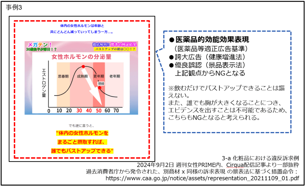 3. 化粧品(薬用化粧品含む)に該当する商材について、医薬品等適正広告基準に違反している表現