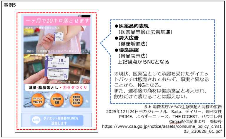 6. その他、薬機法や景表法以外の法令等に違反している表現や、消費者庁から過去に指摘/注意喚起されている表現