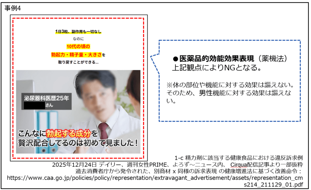 4. 医薬品に該当する商材について、医薬品等適正広告基準に違反している表現