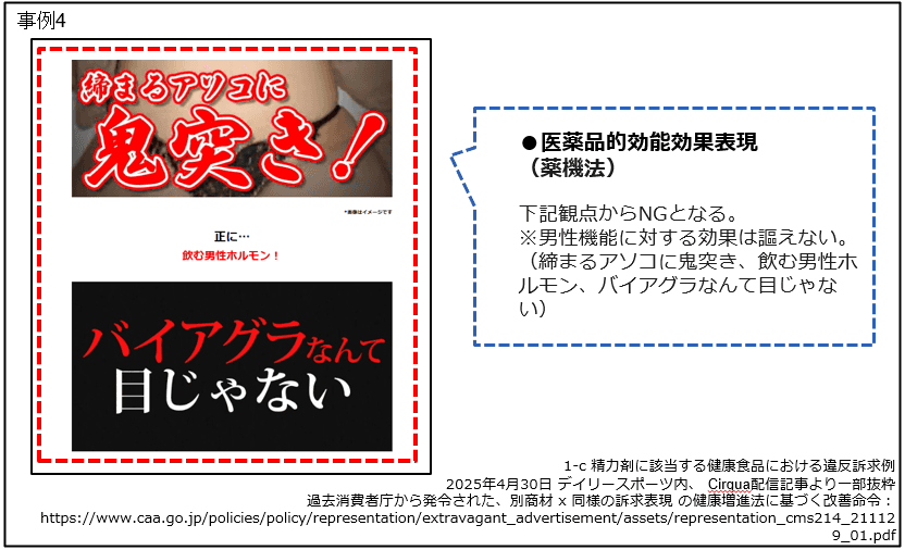 4. 医薬品に該当する商材について、医薬品等適正広告基準に違反している表現