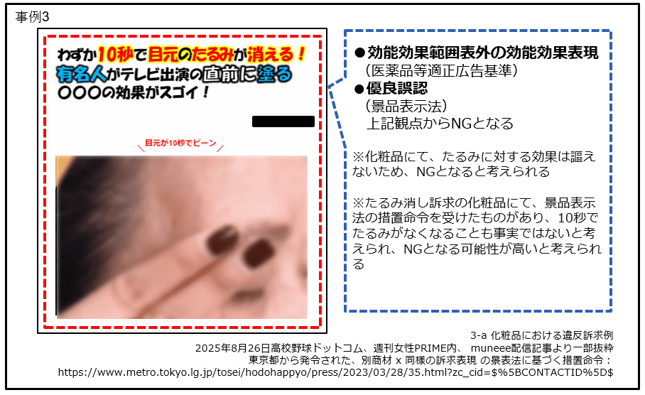 3. 化粧品(薬用化粧品含む)に該当する商材について、医薬品等適正広告基準に違反している表現