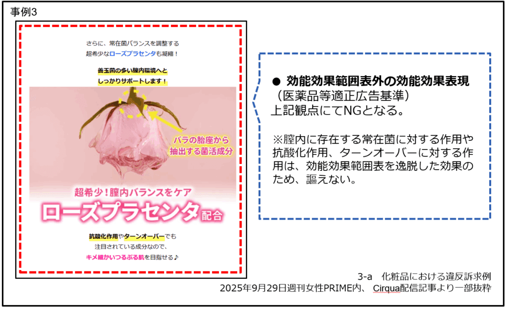 3. 化粧品(薬用化粧品含む)に該当する商材について、医薬品等適正広告基準に違反している表現