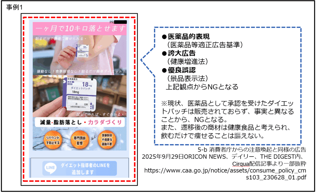 [2] 商材ではなく、その広告表現の内容を問題視し例として記載