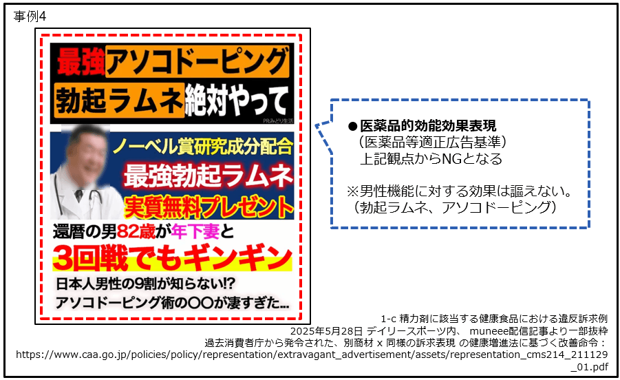 4. 医薬品に該当する商材について、医薬品等適正広告基準に違反している表現