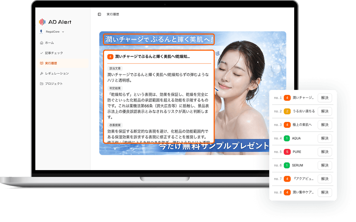 LPやバナー、SNS投稿、動画コンテなど多様な制作物に対応。媒体ごとの注釈ルールの違いも考慮したチェックが可能です。